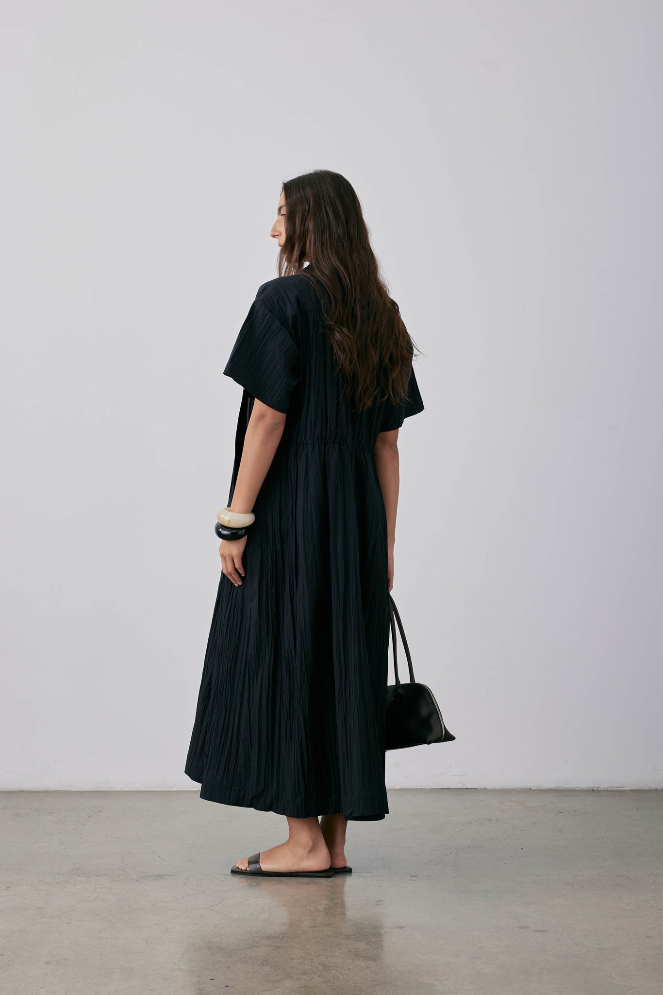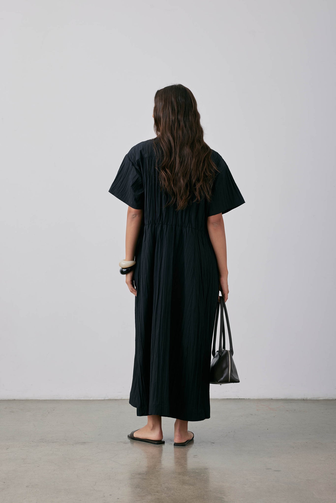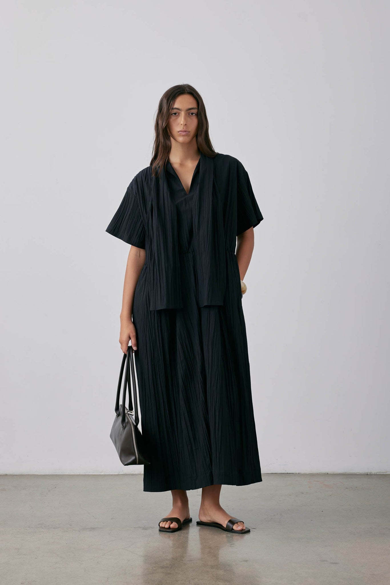 Elevate your style game with the Dale Dress SS25. Made from luxurious crisp pleated cotton, this dress features a versatile scarf for endless styling options. Enjoy high-quality comfort with a lightly elasticated waist and panelled pleated skirt. Upgrade your wardrobe effortlessly with this must-have piece.