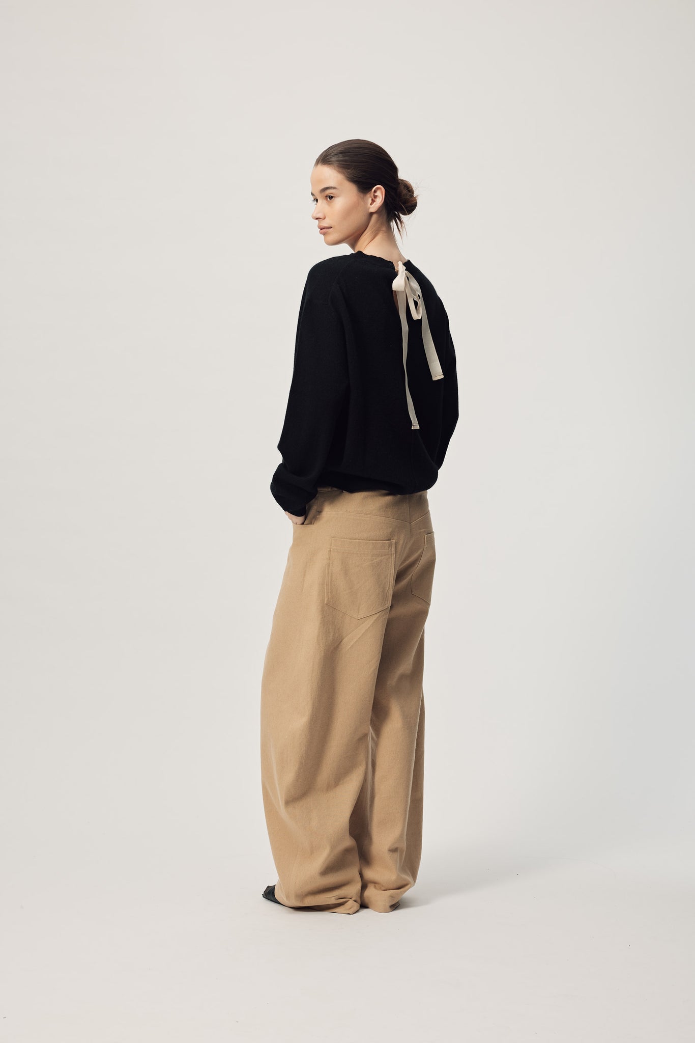 Elevate your knitwear collection with this refined cashmere wool jumper, crafted for those who appreciate quality and understated elegance. The classic crew neckline provides timeless versatility, while delicate cotton organza ties at the back neck add a sophisticated design detail that sets this piece apart. Perfect for layering or wearing solo, this jumper delivers the luxurious softness and warmth cashmere is renowned for, making it an investment piece that transcends seasonal trends.