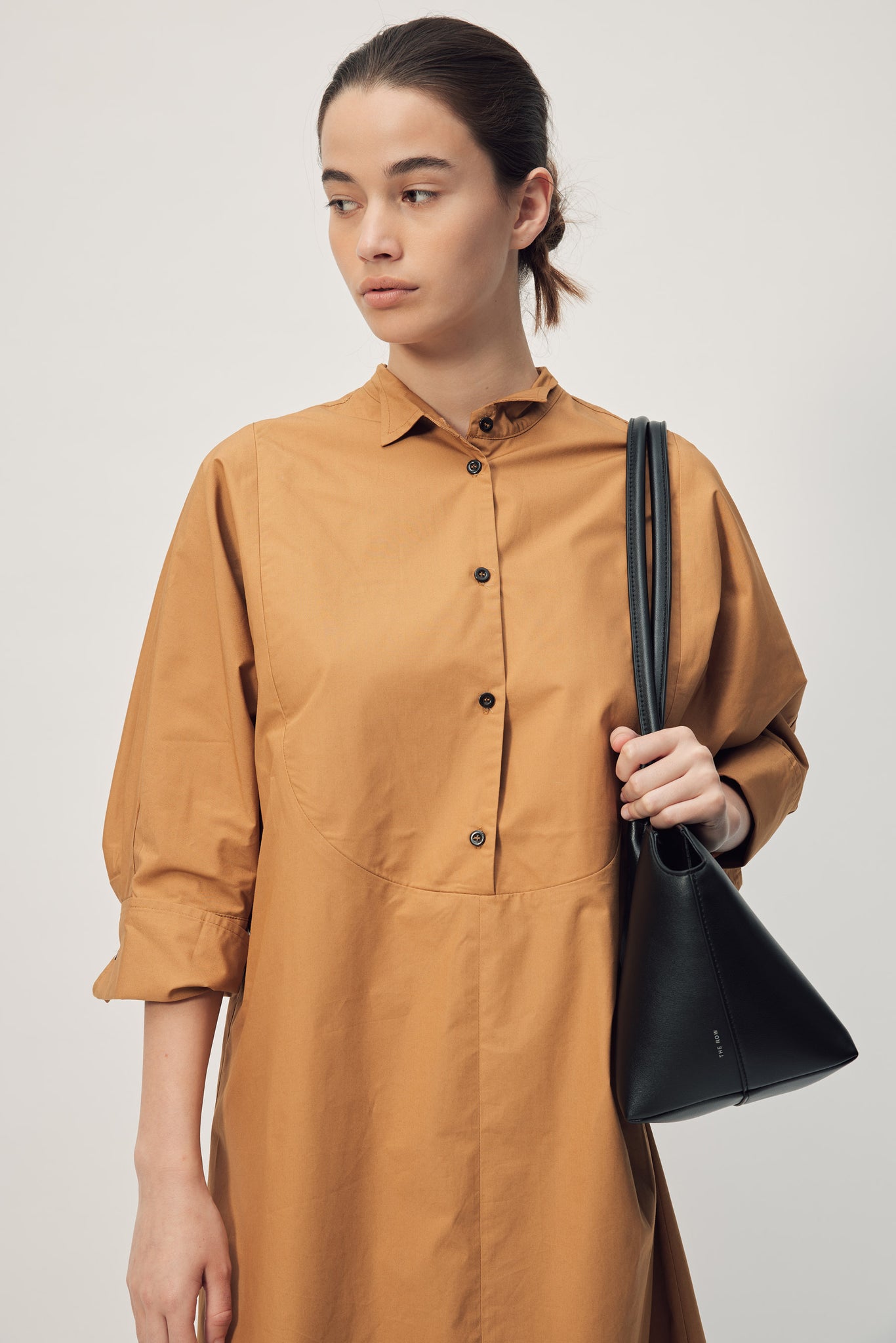 The Carmen Shirt Dress epitomizes contemporary minimalism through its thoughtfully executed design. This piece showcases a striking bib front that introduces architectural depth to the silhouette, while the button-front closure provides practical ease of wear. Finished with precisely folded elbow-length cuffs, the dress demonstrates the hallmark of refined tailoring. Its versatile construction makes it equally at home in relaxed settings or polished smart-casual environments, establishing itself as an indispensable wardrobe foundation for the discerning wearer.