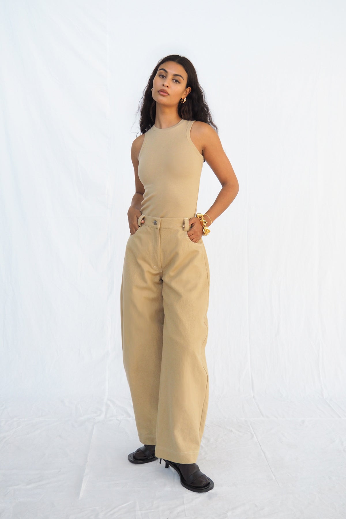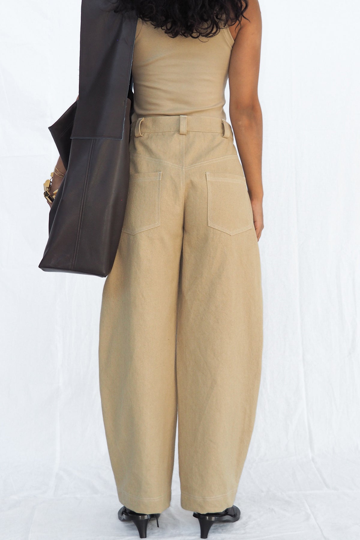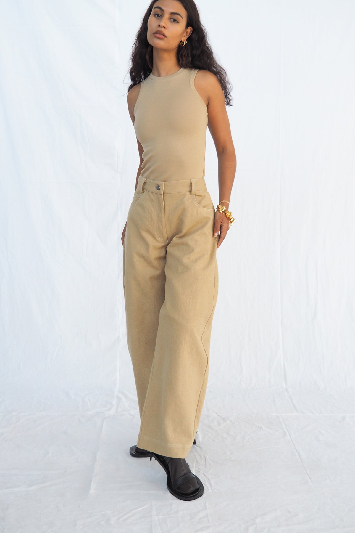 Made from a heavy Japanese flax cotton fabric. Our barrel-leg jeans are cropped above the ankle and are one of our signature styles. An investment piece, these jeans will become a power-player in your spring-summer wardrobe.