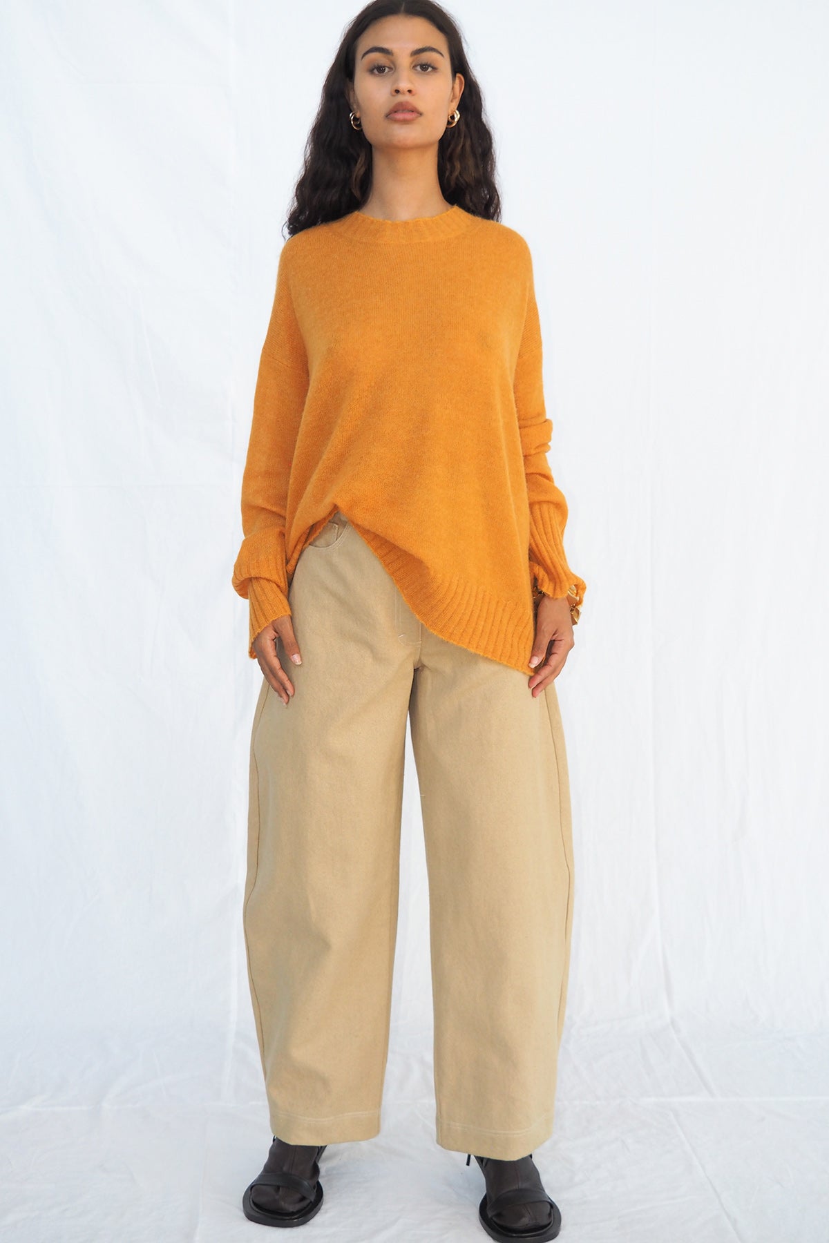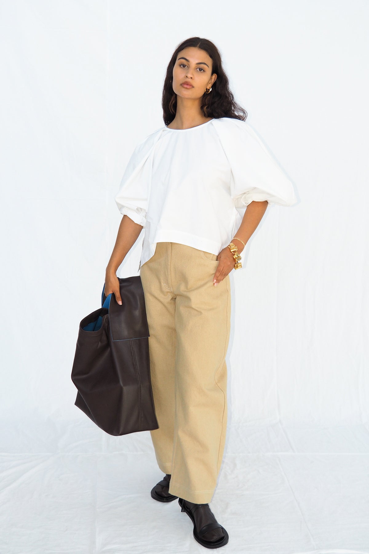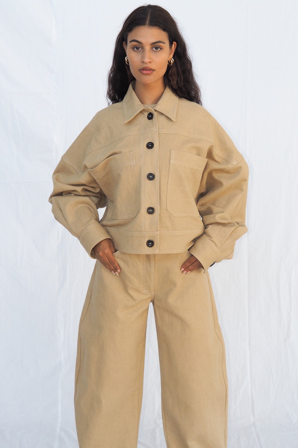 Made from a heavy Japanese flax cotton fabric. Our barrel-leg jeans are cropped above the ankle and are one of our signature styles. An investment piece, these jeans will become a power-player in your spring-summer wardrobe.