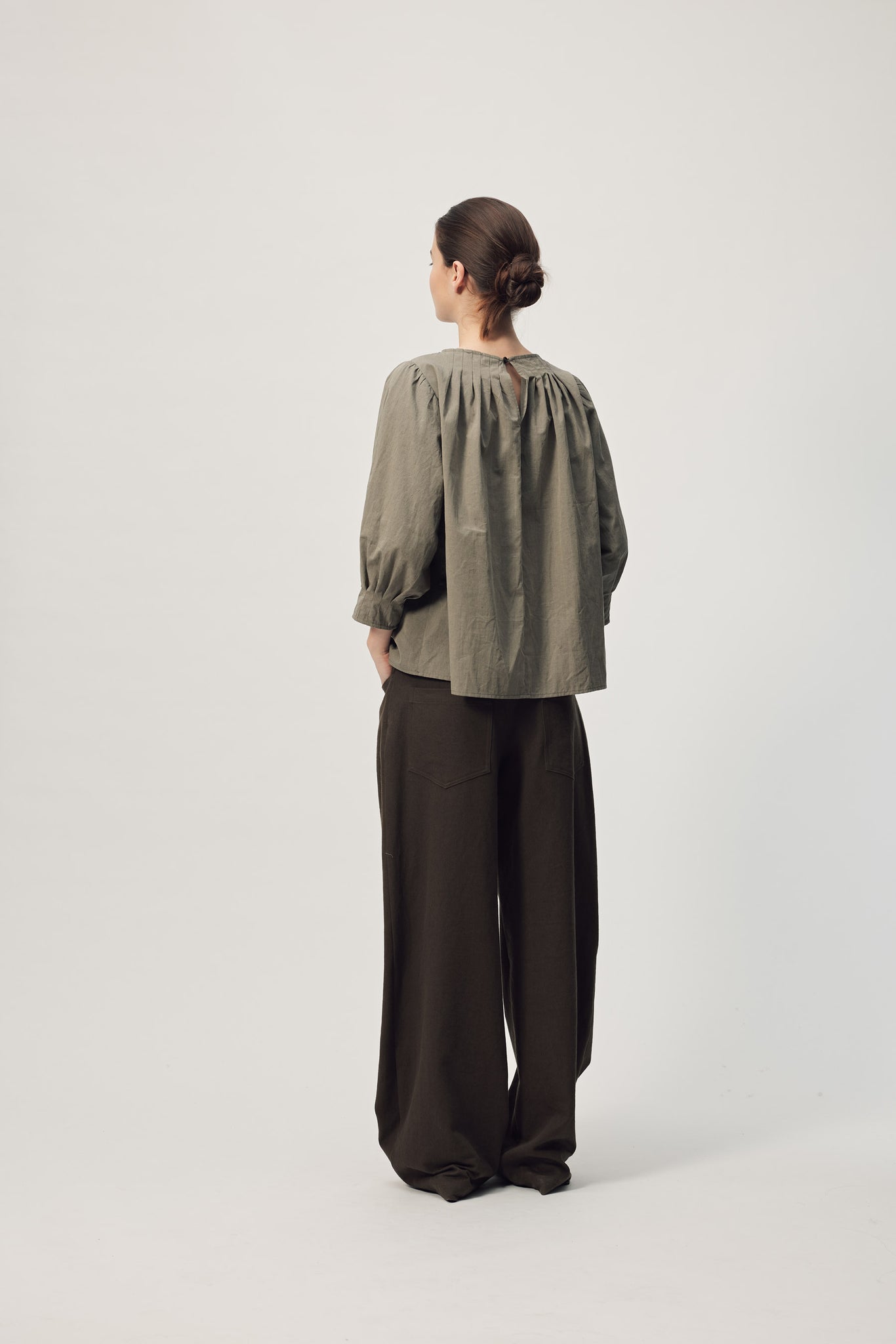 The Pietro Top is a luxurious addition to your wardrobe, expertly crafted with Japanese loom woven cotton. Its unique hand pleated neckline and cuffs add a touch of elegance to this short sleeve top. it's the perfect versatile piece for any occasion.